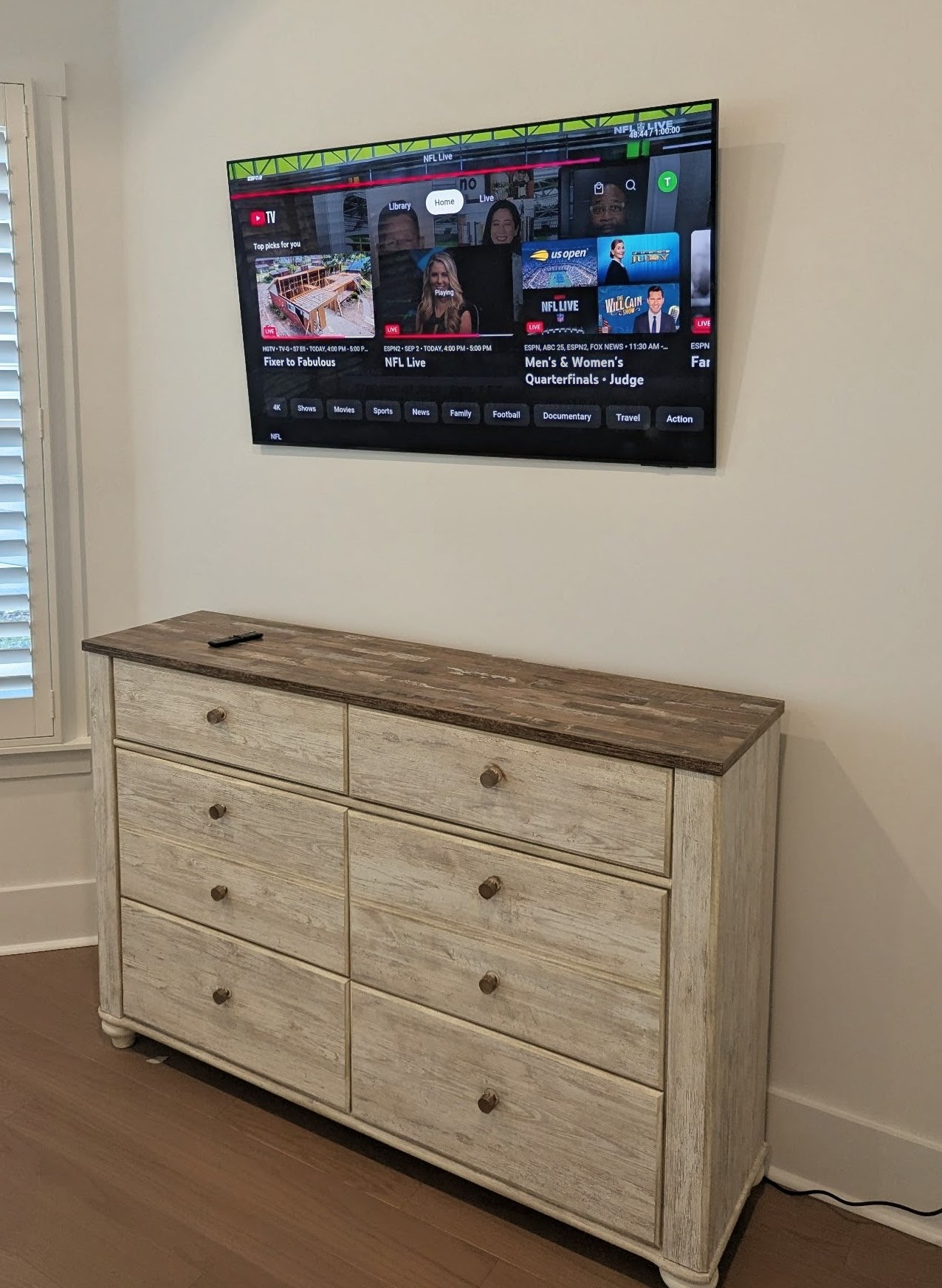 Precision Placement: Every TV is mounted perfectly level and centered at the optimal viewing height for the room.